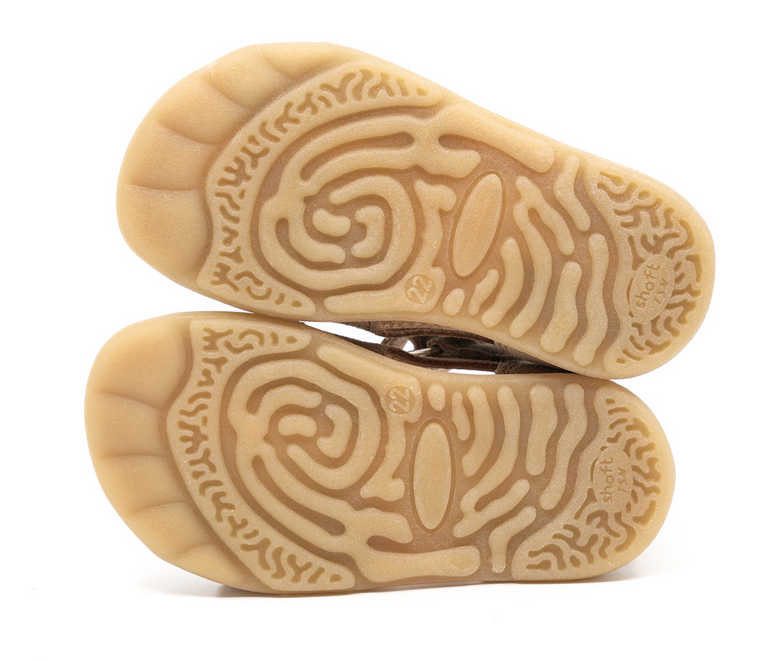 Buty wykonane są z naturalnych skór i materiałów, certyfikowanych przez Unię Europejską. Doskonale dopasowują się do kształtu stopy dziecka – dzięki temu stopa dziecka jest odpowiednio wspierana, a jednocześnie może swobodnie oddychać.