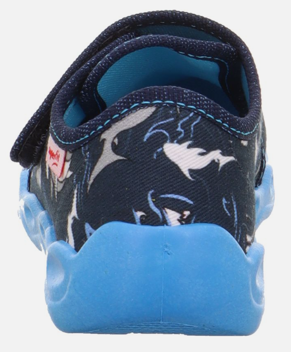 Wyściółka oraz wkładka wykonane są z granatowego, przewiewnego materiału. Marka Superfit specjalizuje się w dziecięcym obuwiu. Doświadczenie, jakie firma zyskała przez dekady działalności pozwala z czystym sumieniem polecić kapcie Superfit.