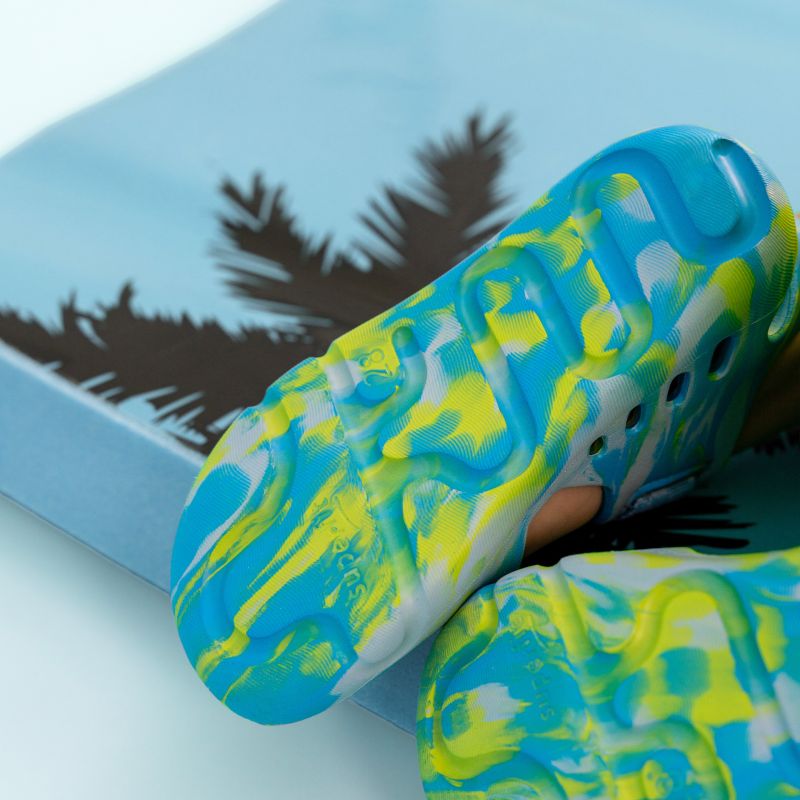 Te sandały SPLASH wyróżniają się niezwykle cienką i ultralekką podeszwą. Te wesołe, idealnie dopasowane letnie obuwie gwarantuje doskonały komfort chodzenia. Miękkie zapięcia na rzepy z tkaniny tworzą świeży kontrast kolorystyczny i zapewniają doskonałą regulację. Dzięki miękkiemu, jednolitemu materiałowi sandały doskonale radzą sobie z zabrudzeniami i wodą.