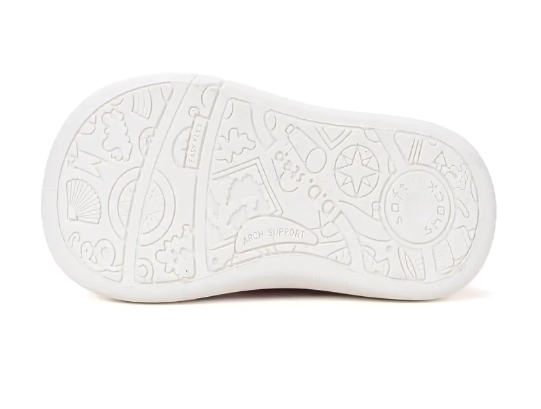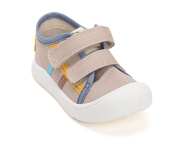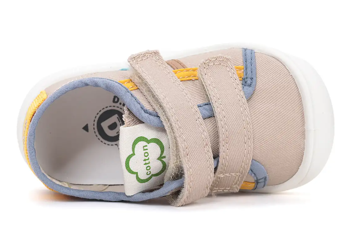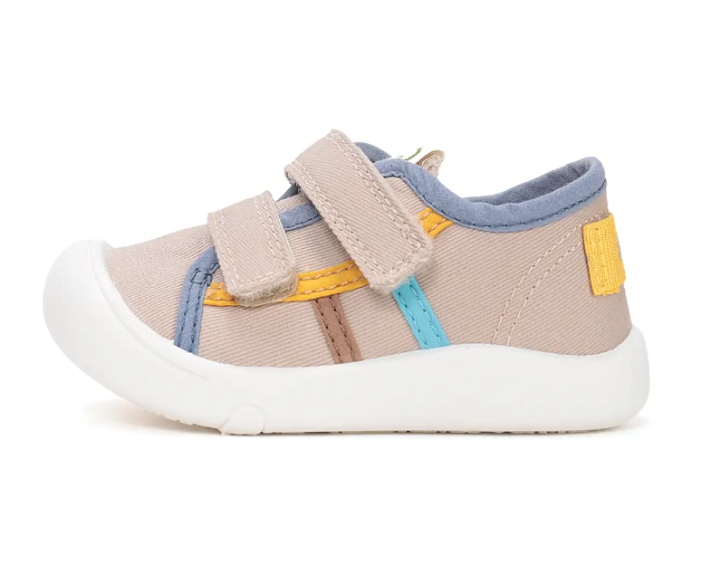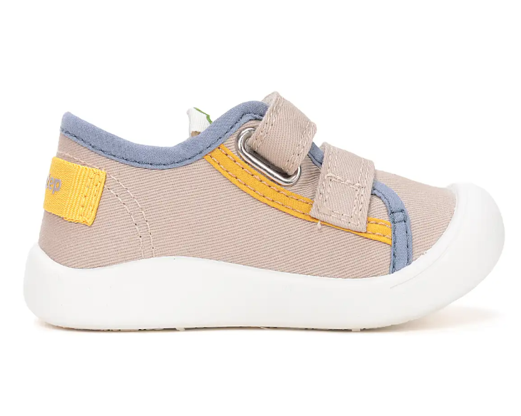 Trampki dziecięce w kolorze kremowym to idealne obuwie do spacerów i zabaw na dworze, również dla dzieci które dopiero uczą się stawiać swoje pierwsze kroczki. Podeszwa jest niezwykle lekka i sprężysta, a jednocześnie antypoślizgowa. But posiada miękką wkładkę, dopasowaną do kształtu buta oraz stopy. Wkładka wykonana z pianki oraz pokryta jest skórą.